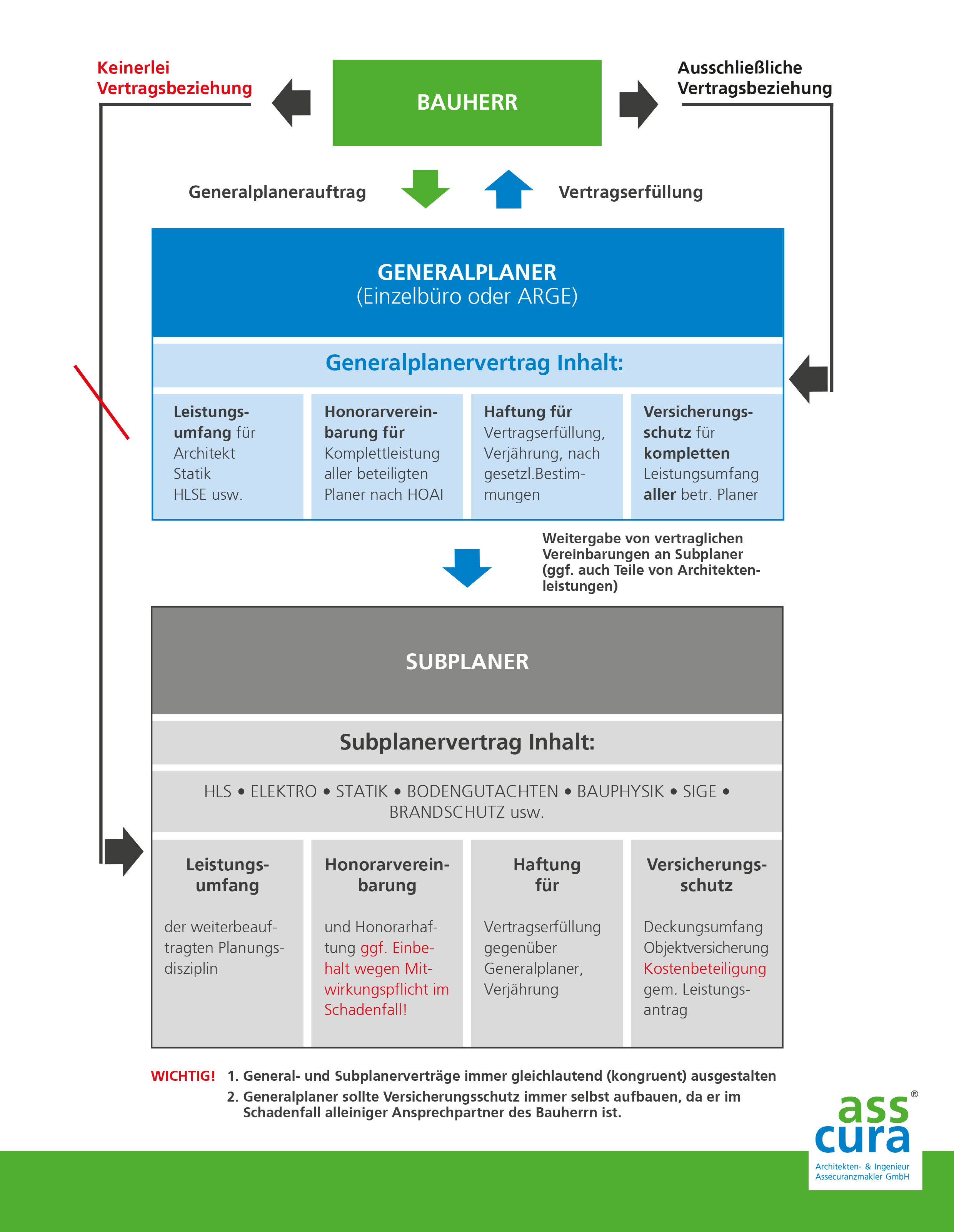 Der Generalplaner als Alleinverantwortlicher gegenüber dem Bauherrn in der Übersicht.