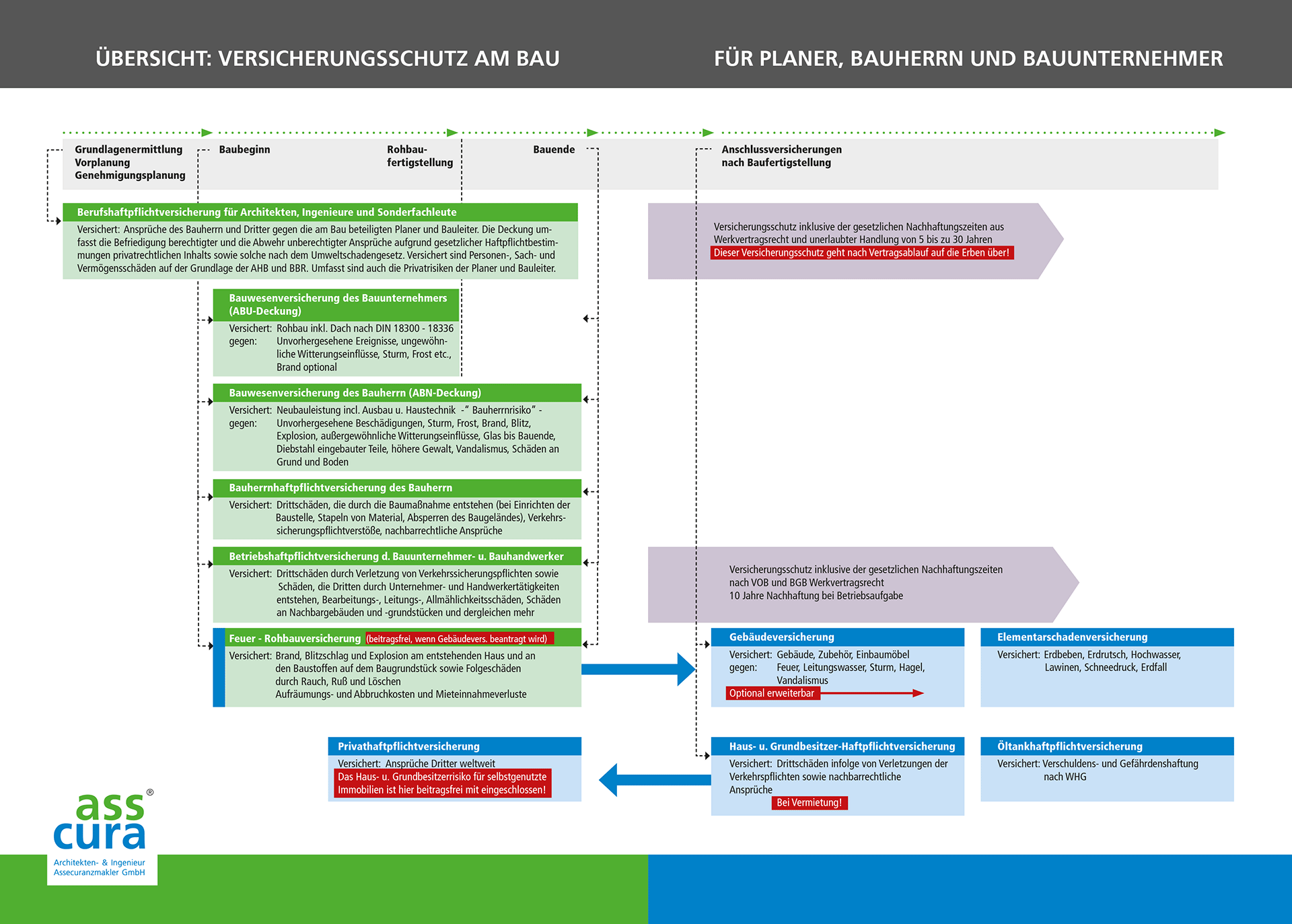 Verschaffen Sie sich bereits vor Projektbeginn einen Überblick über die wichtigsten Versicherungen für Planer, Bauherren und Bauunternehmer: